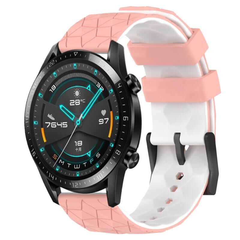 Για Huawei GT2 46mm 22mm ποδοσφαιρικό μοτίβο δύο χρωμάτων σιλικόνης ρολόι μπάντα (ροζ + λευκό)