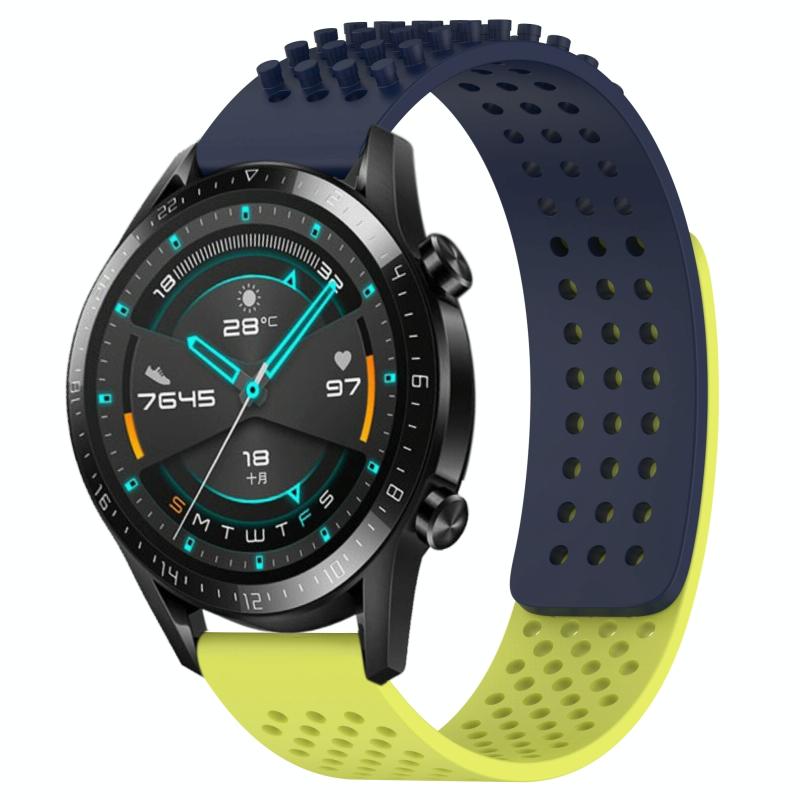 For Huawei GT2 46mm 22mm Holes Breathable 3D Dots Silicone Watch Band(Midnight Blue+Lime Green)