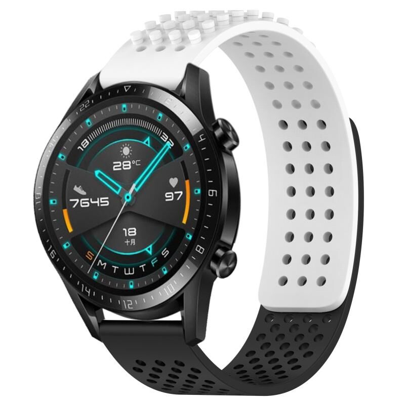 Για Huawei GT2 46mm 22mm οπές αναπνεύσιμο 3D Dots σιλικόνης ρολόι μπάντα ρολογιών (λευκό + μαύρο)