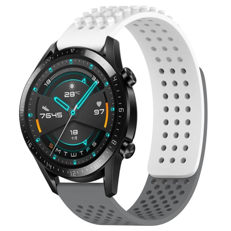 For Huawei GT2 46mm 22mm Holes Breathable 3D Dots Silicone Watch Band(White+Grey)