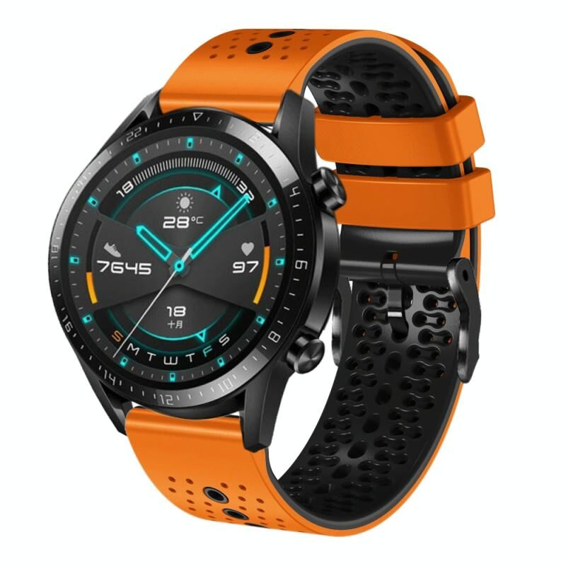 Για το Huawei GT2 46mm 22mm διάτρητη ζώνη ρολογιού σιλικόνης δύο χρωμάτων (πορτοκαλί+μαύρο)