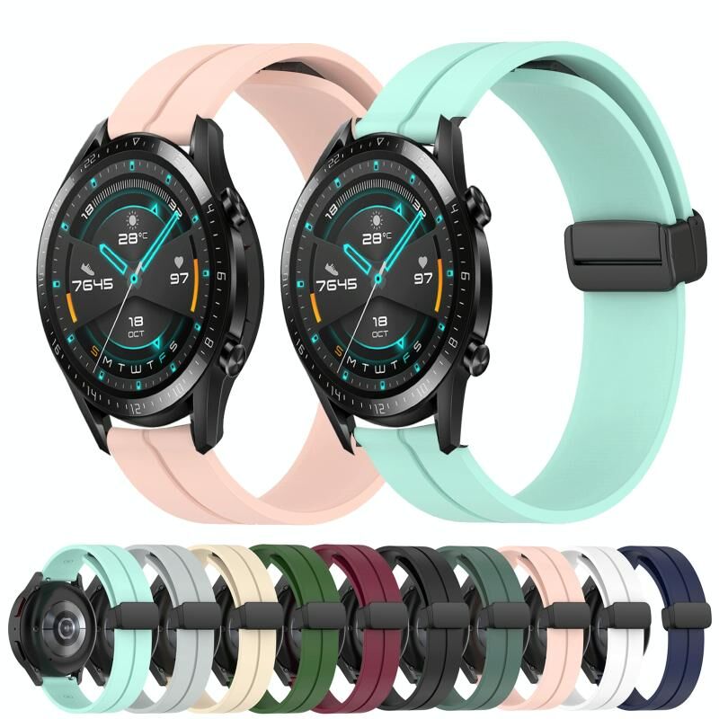 Για Huawei GT2 46mm 22mm στερεό χρώμα μαγνητικό κούμπωμα σιλικόνης ρολόι μπάντα ρολογιού (Στρατού πράσινο)