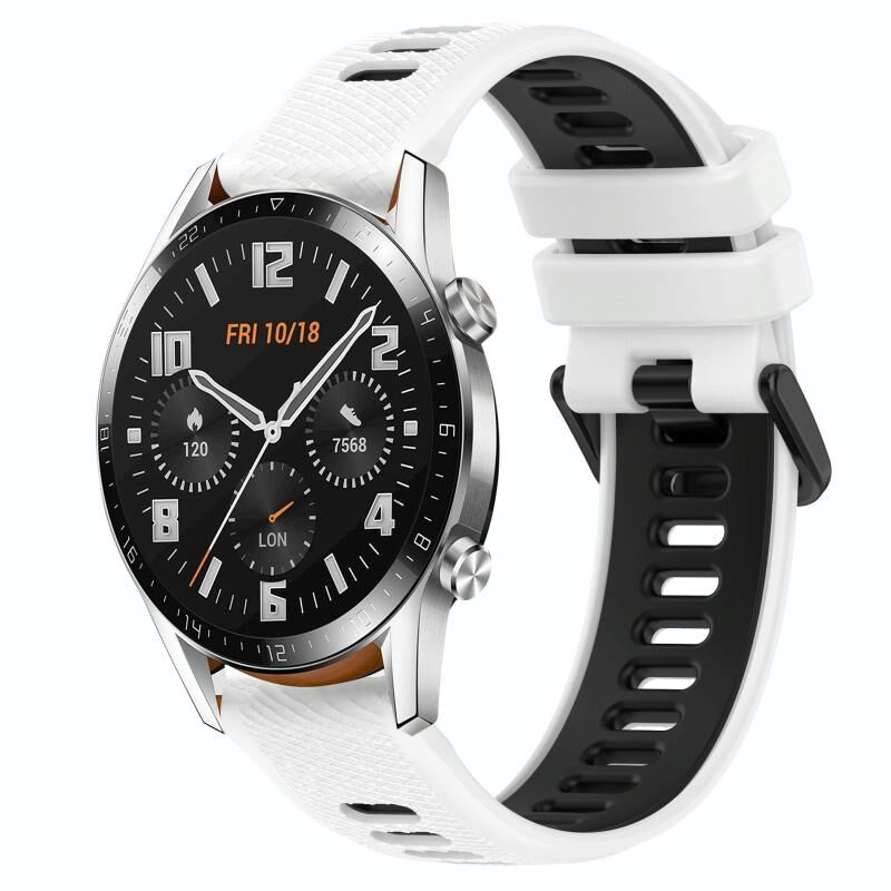 Για το Huawei GT2 46mm 22mm Αθλητική ζώνη ρολογιού σιλικόνης δύο χρωμάτων (Λευκό + Μαύρο)