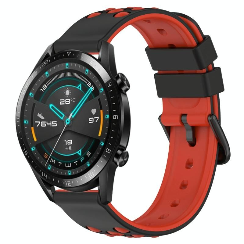 Για το Huawei GT2 46mm 22mm Δύο-χρώμα πορώδες λουράκι σιλικόνης ρολόι (μαύρο + κόκκινο)