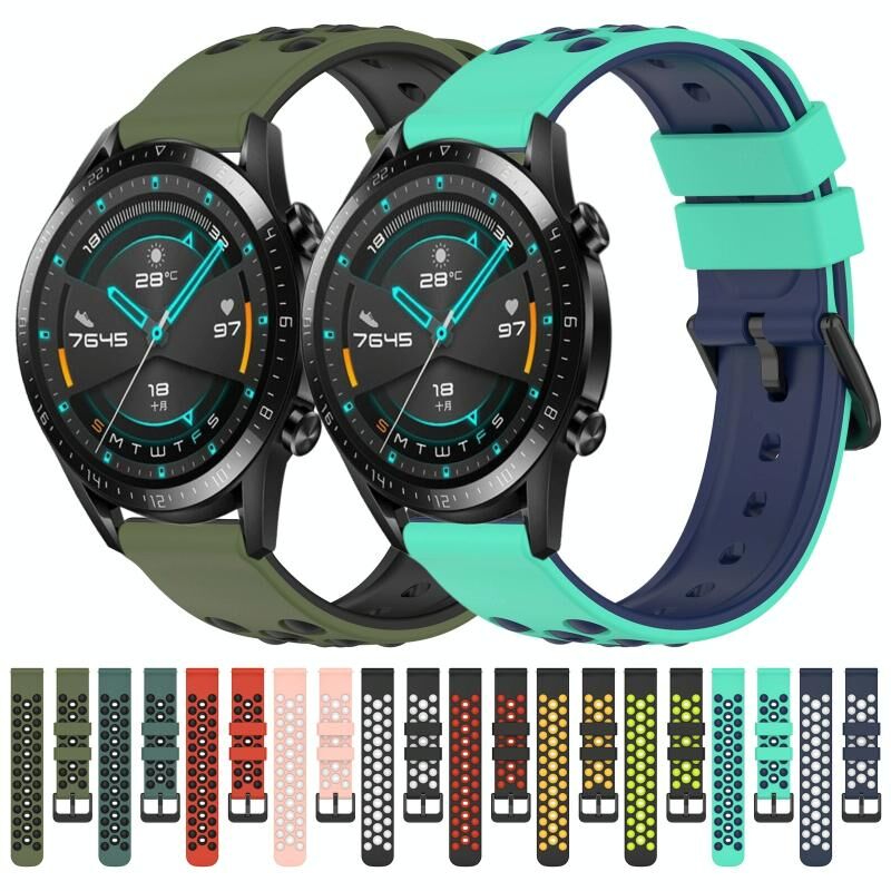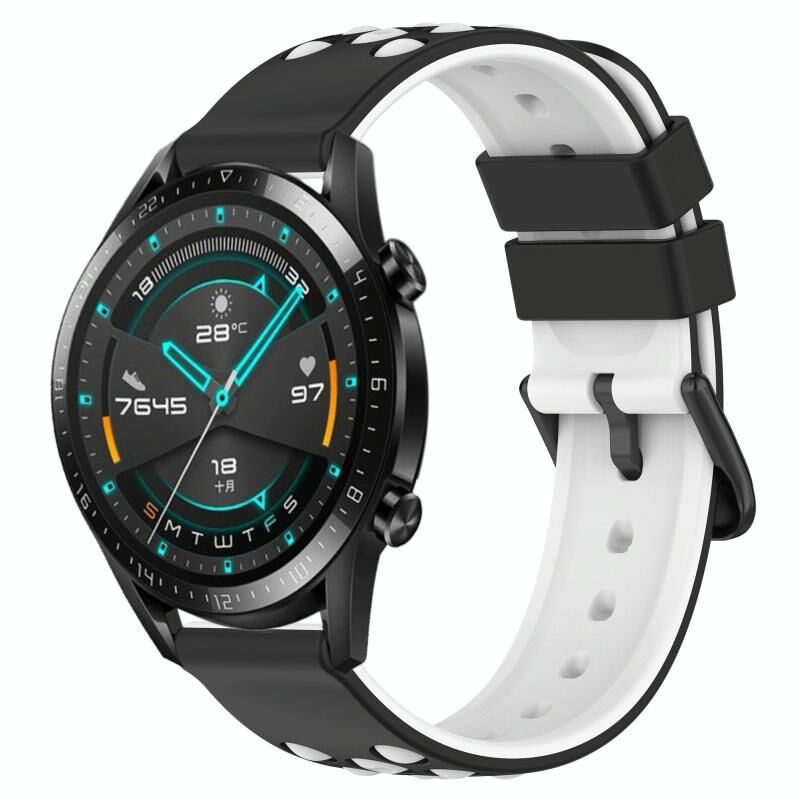 Για το Huawei GT2 46mm 22mm Δύο-χρώμα πορώδες λουράκι σιλικόνης ρολόι (Μαύρο + Λευκό)