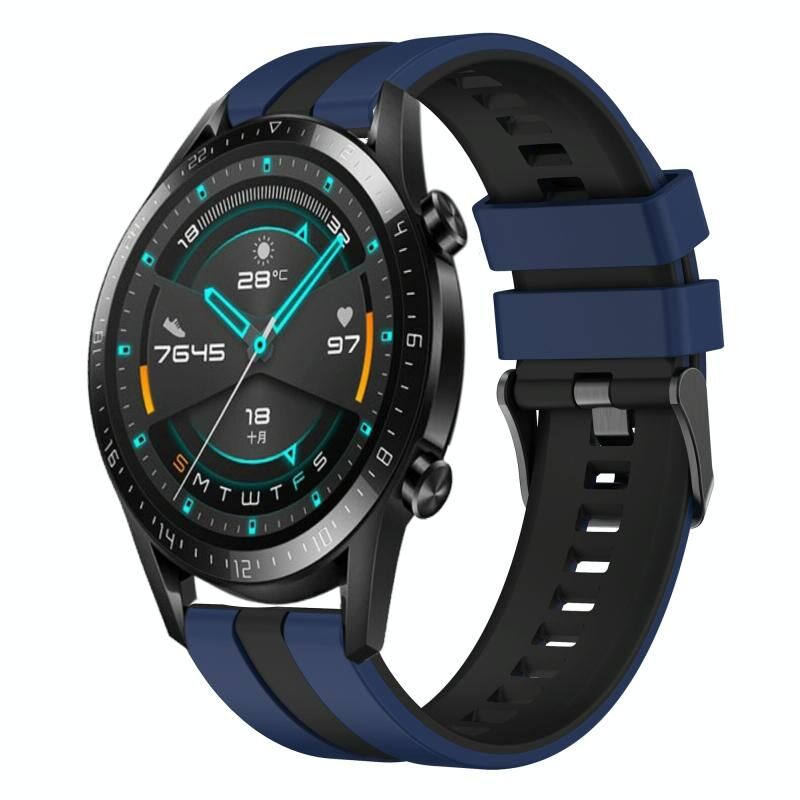 For Huawei GT2 46mm 22mm Two Color Sports Silicone Watch Band(Blue+Black)