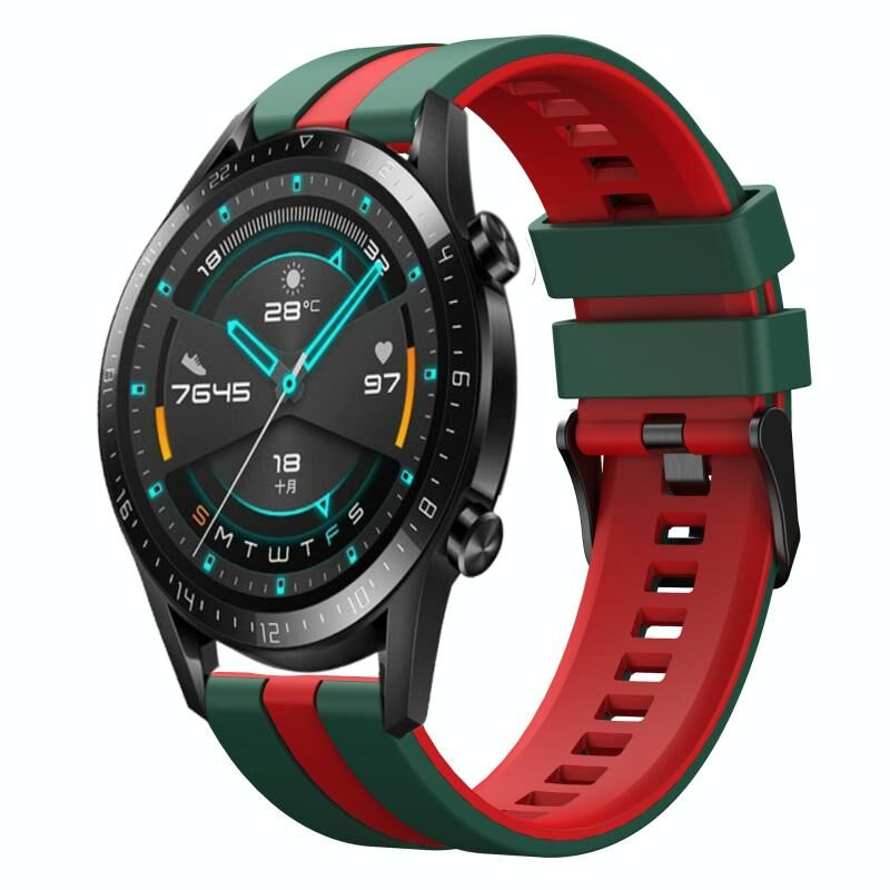 Για Huawei GT2 46mm 22mm Δύο χρώματα αθλητική ζώνη σιλικόνης ρολόι (πράσινο + κόκκινο)
