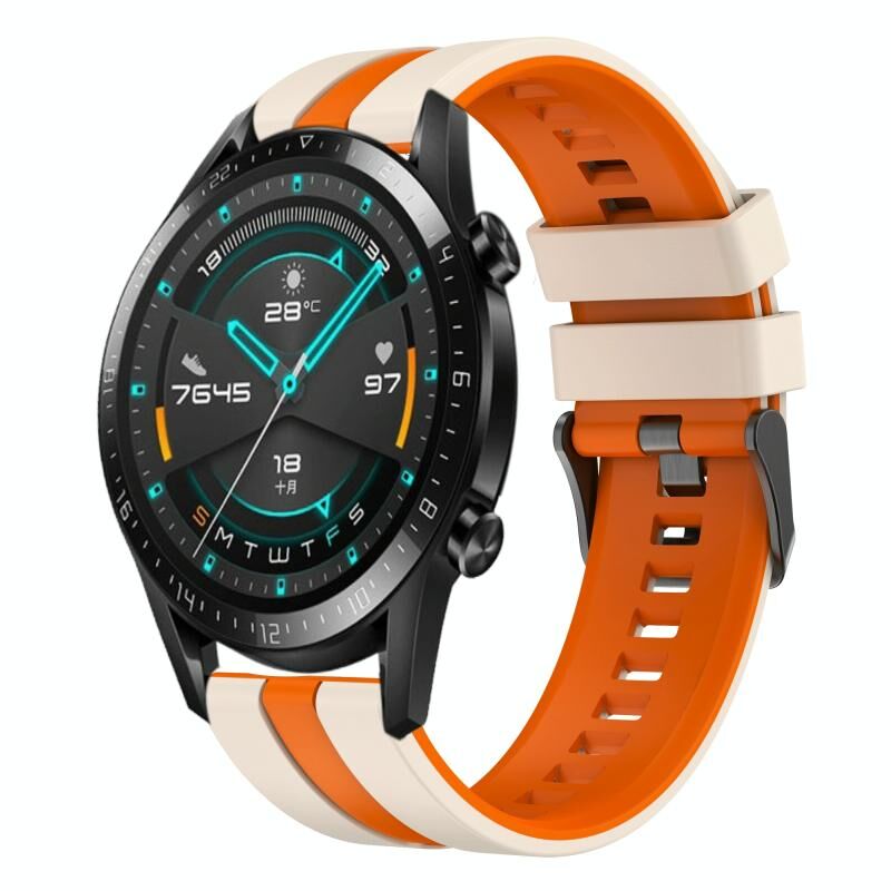 Για το Huawei GT2 46mm 22mm Δύο χρώματα Αθλητικό λουράκι σιλικόνης (Starlight + πορτοκαλί)