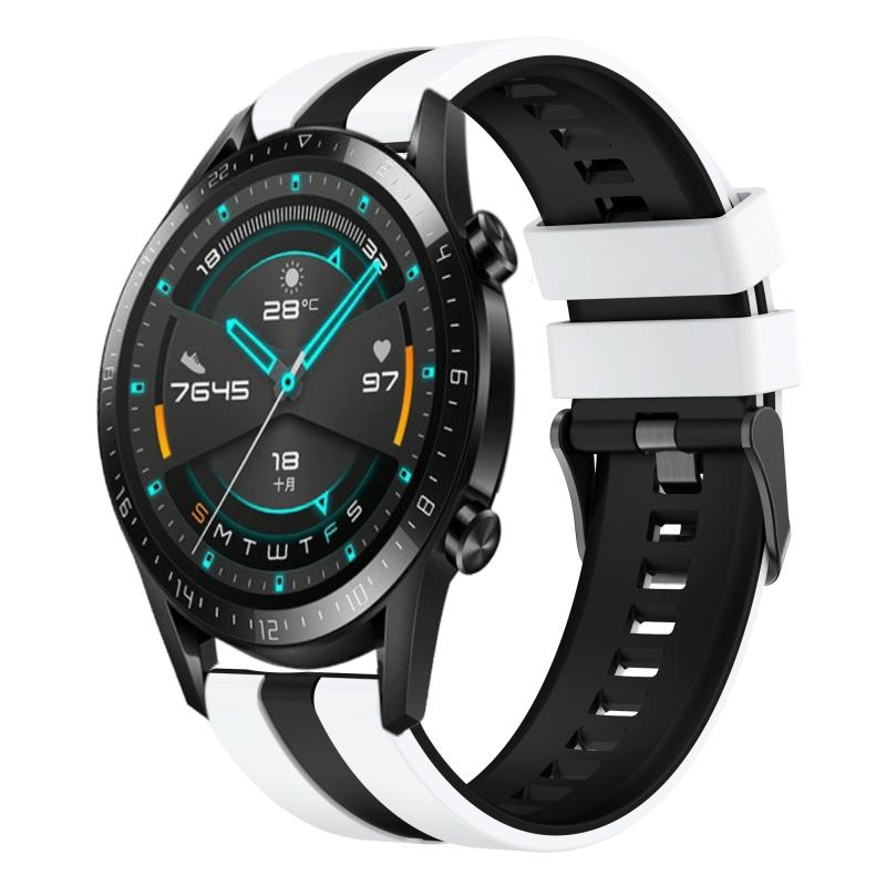 For Huawei GT2 46mm 22mm Two Color Sports Silicone Watch Band(White+Black)
