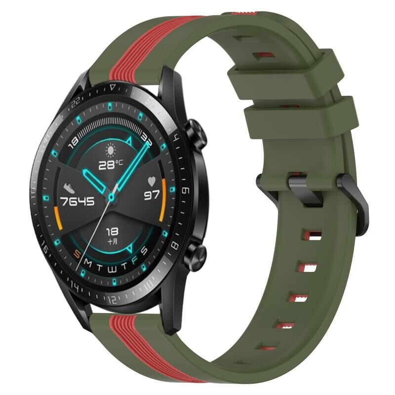 Για Huawei GT2 46mm 22mm Κάθετη ζώνη ρολογιού σιλικόνης δύο χρωμάτων (πράσινο στρατού + κόκκινο)