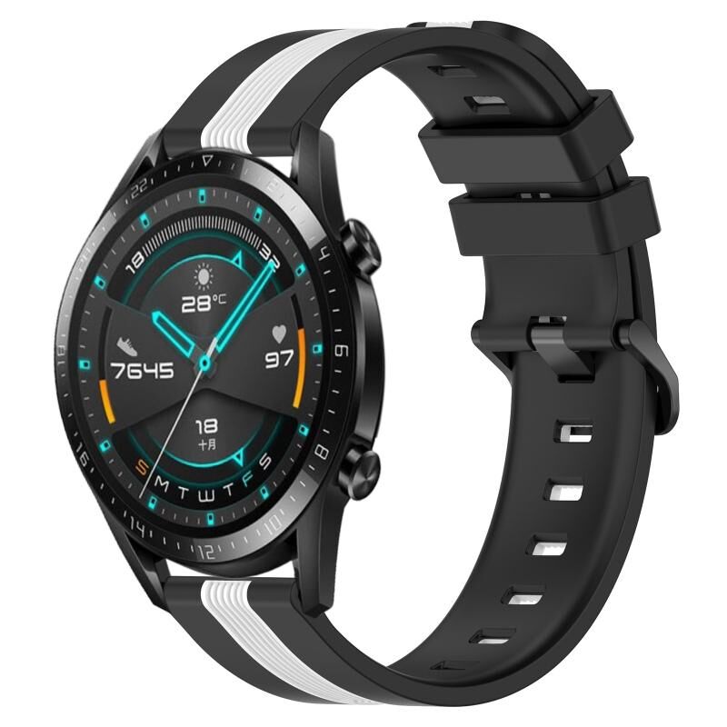 Για Huawei GT2 46mm 22mm Κάθετη ζώνη ρολογιού σιλικόνης δύο χρωμάτων (μαύρο + λευκό)