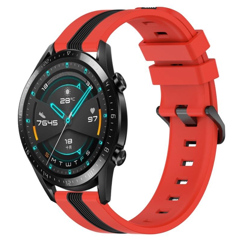 Για Huawei GT2 46mm 22mm Κάθετη ζώνη ρολογιού σιλικόνης δύο χρωμάτων (κόκκινο+μαύρο)