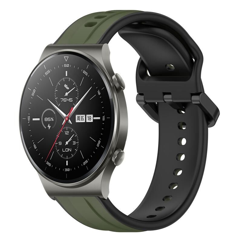 Για το Huawei GT2 Pro 22mm κυρτό βρόχο σιλικόνης δύο χρωμάτων (σκούρο πράσινο + μαύρο)