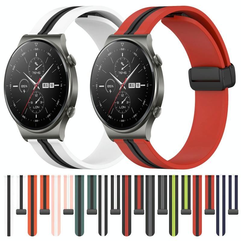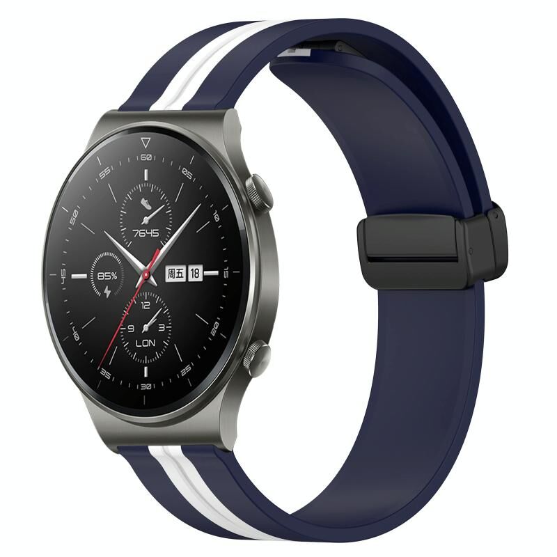 Για Huawei GT2 Pro 22mm Πτυσσόμενο μαγνητικό κούμπωμα σιλικόνης ρολόι μπάντα (Midnight Blue + Λευκό)