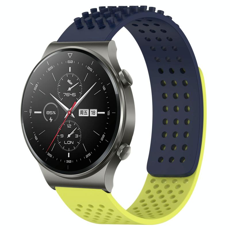 For Huawei GT2 Pro 22mm Holes Breathable 3D Dots Silicone Watch Band(Midnight Blue+Lime Green)