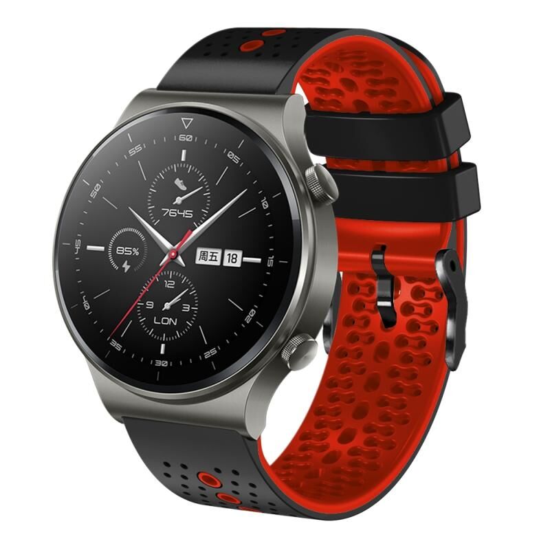 Για το Huawei GT2 Pro 22mm διάτρητη ζώνη ρολογιού σιλικόνης δύο χρωμάτων (μαύρο + κόκκινο)