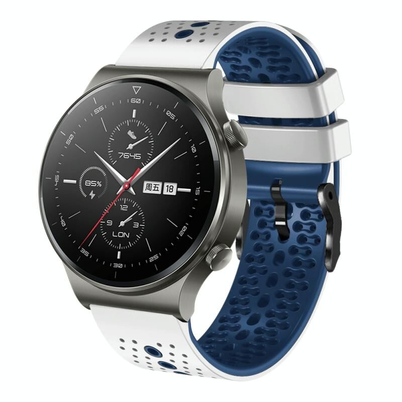 Για το Huawei GT2 Pro 22mm διάτρητη ζώνη ρολογιού σιλικόνης δύο χρωμάτων (λευκό + μπλε)