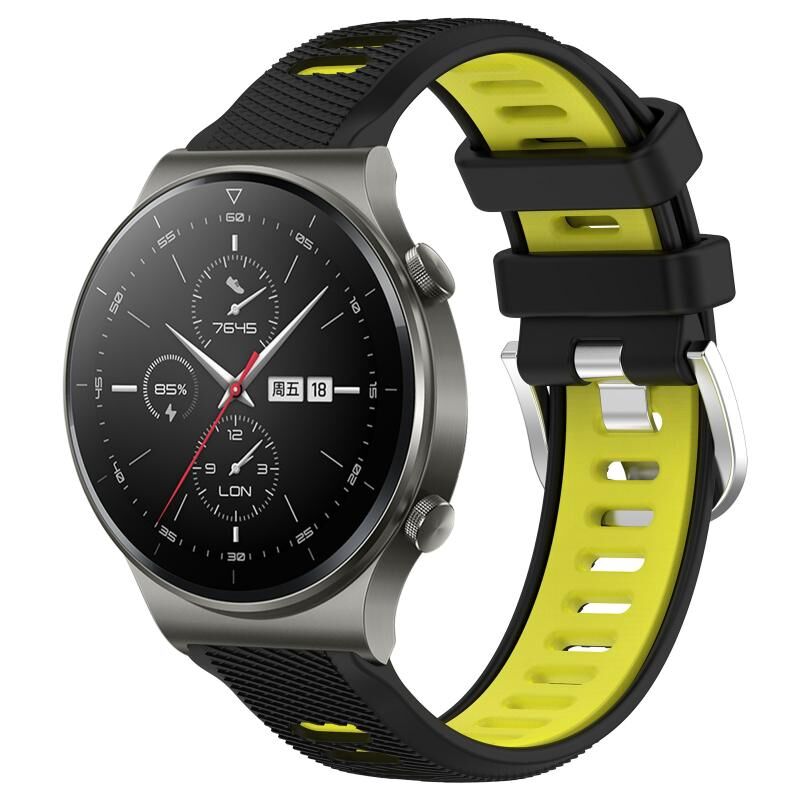 Για Huawei GT2 Pro 22mm Αθλητισμός Δύο χρωμάτων χάλυβα πόρπη σιλικόνης ρολόι μπάντα (μαύρο + πράσινο χρώμα)
