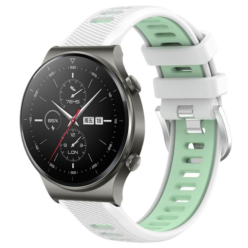 Για Huawei GT2 Pro 22mm Αθλητισμός Δύο χρωμάτων χάλυβα πόρπη σιλικόνης ρολόι μπάντα (λευκό + Teal)