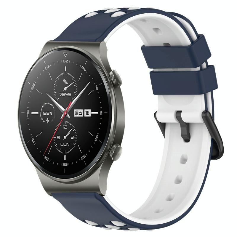Για το Huawei GT2 Pro 22 χιλιοστά δύο χρωμάτων πορώδη ζώνη ρολογιού σιλικόνης (Μπλε μεσάνυχτα + Λευκό)