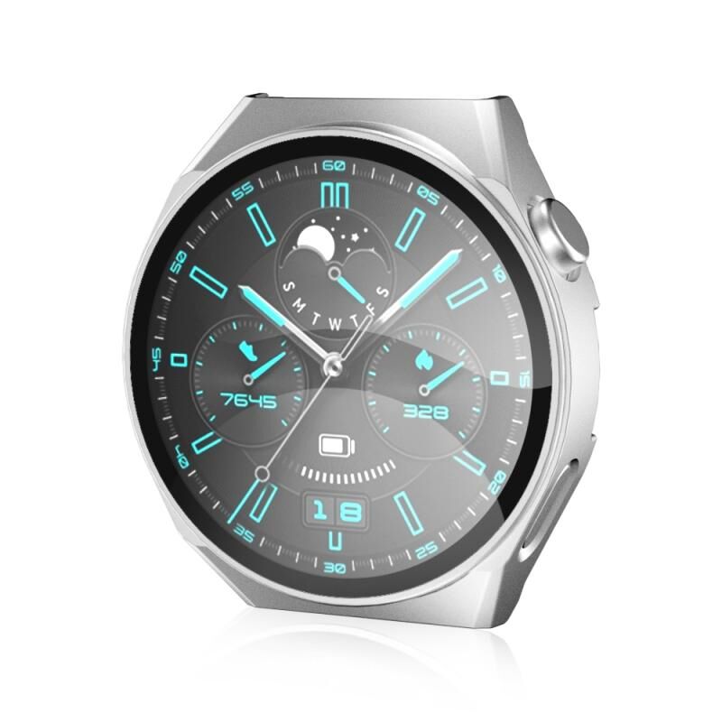 For Huawei GT3 Pro 46mm 2 in 1 PC Frame + Tempered Glass Film Watch Protective Case(Silver)