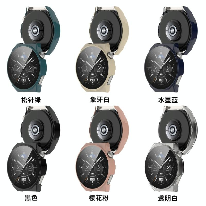 For Huawei GT3 Pro 46mm PC + Tempered Film All-in-one All-inclusive Watch Protective Case(Pine Needle Green)
