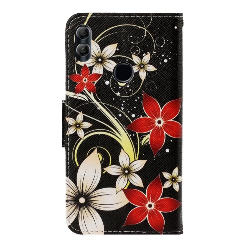 Θήκη για Huawei Honor 10 Lite 3D με έγχρωμο σχέδιο, οριζόντια αναδιπλούμενη από δερματίνη PU με βάση στήριξης & θήκες για κάρτες & πορτοφόλι (Κόκκινο Λουλούδι)