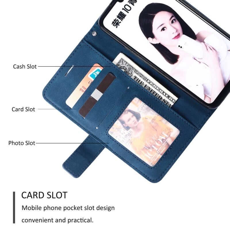 Για Huawei Honor 10 Lite Skin Feel Splicing οριζόντια Flip δερμάτινη θήκη με κάτοχο & υποδοχές καρτών & πορτοφόλι & πλαίσιο φωτογραφιών (μπλε)