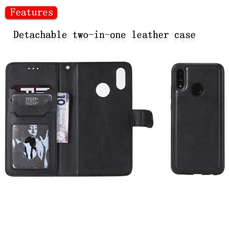 Για Huawei Honor 10 Lite Αμιγές χρώμα οριζόντια Flip προστατευτική θήκη με υποδοχές για κάρτες & θήκες & πορτοφόλι & κορνίζα φωτογραφιών & κορδόνι (Μαύρο)