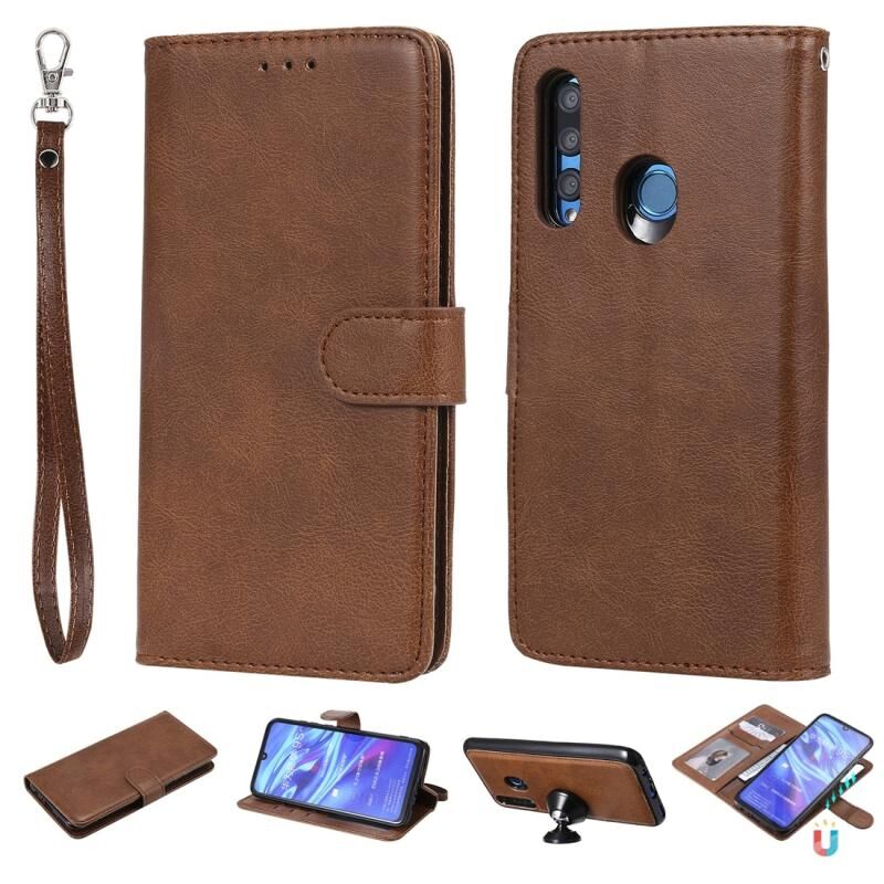 Για Huawei Honor 10i Αμιγές χρώμα οριζόντια Flip προστατευτική θήκη με κάτοχο & υποδοχές για κάρτες & πορτοφόλι & πλαίσιο φωτογραφιών & κορδόνι (καφέ)