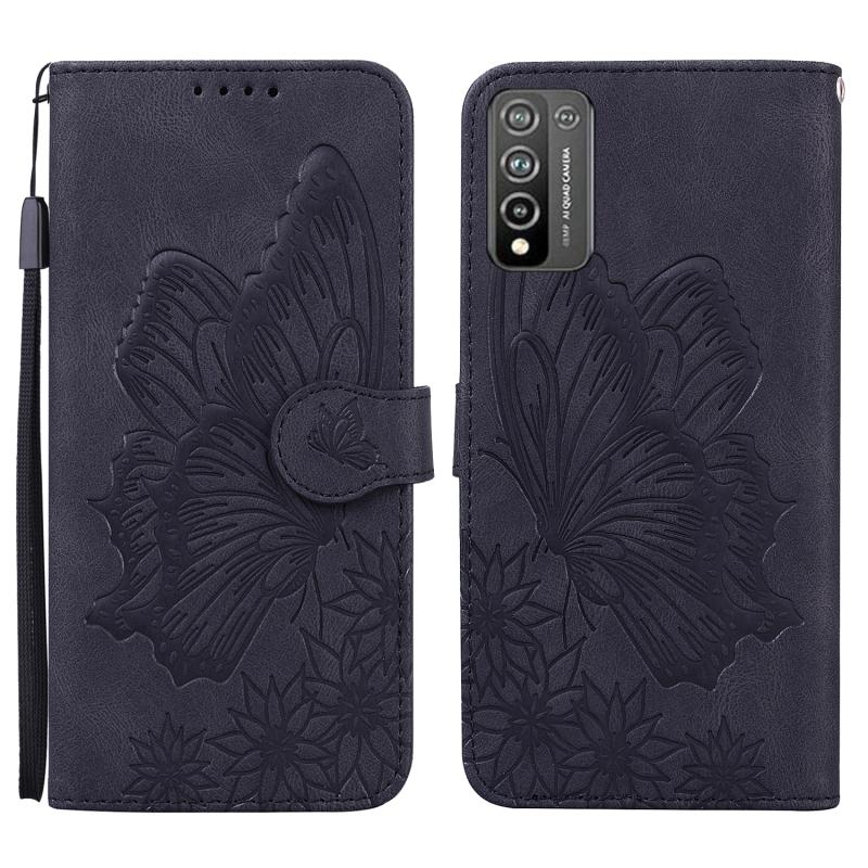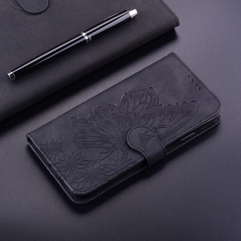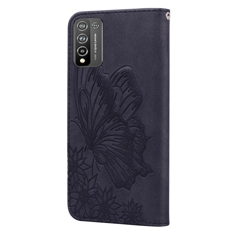 Θήκη Huawei Honor 10X Lite με υφή retro, ανάγλυφα σχέδια πεταλούδων, οριζόντια, από δέρμα με βάση στήριξης & θήκες για κάρτες & πορτοφόλι (Καφέ)
