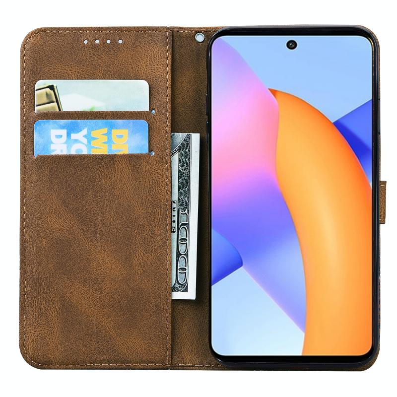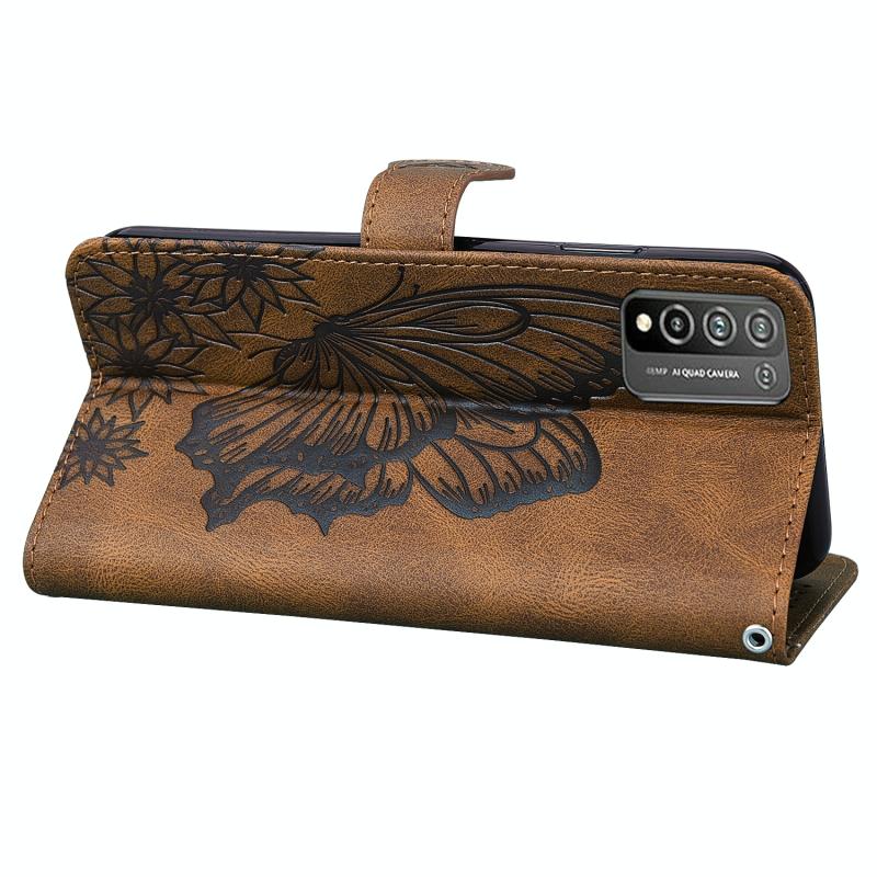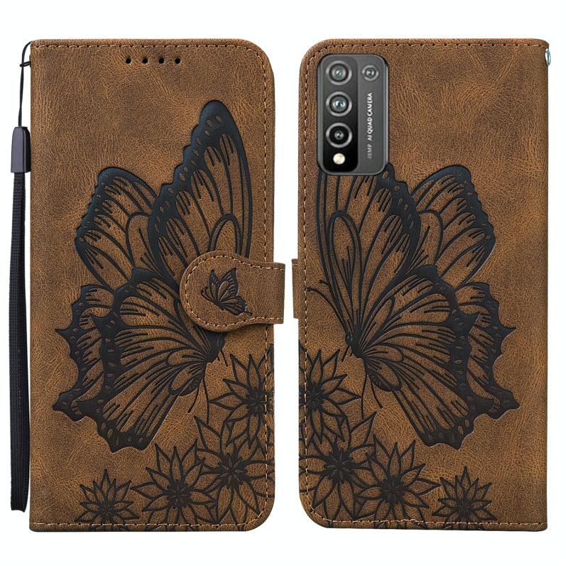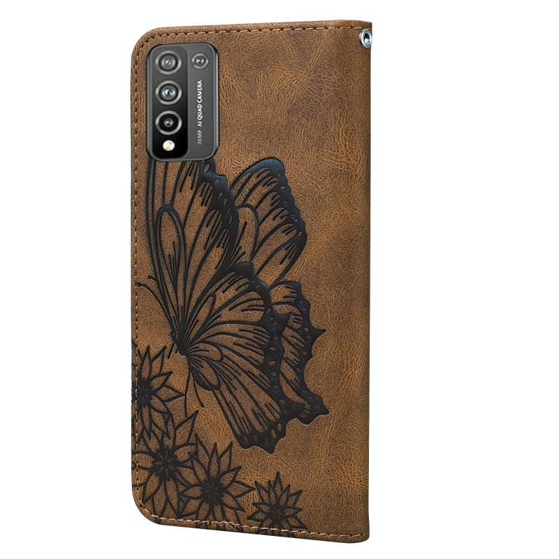 Θήκη Huawei Honor 10X Lite με υφή retro, ανάγλυφα σχέδια πεταλούδων, οριζόντια, από δέρμα με βάση στήριξης & θήκες για κάρτες & πορτοφόλι (Καφέ)