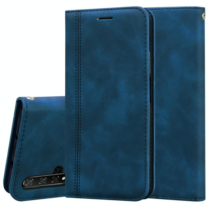 Θήκη Huawei Honor 20 με Μαγνητικό Κλείσιμο, Οριζόντια, από Δέρμα PU με Ματ Υφή, με Θήκη & Θήκη Καρτών & Λουρί (Μπλε)