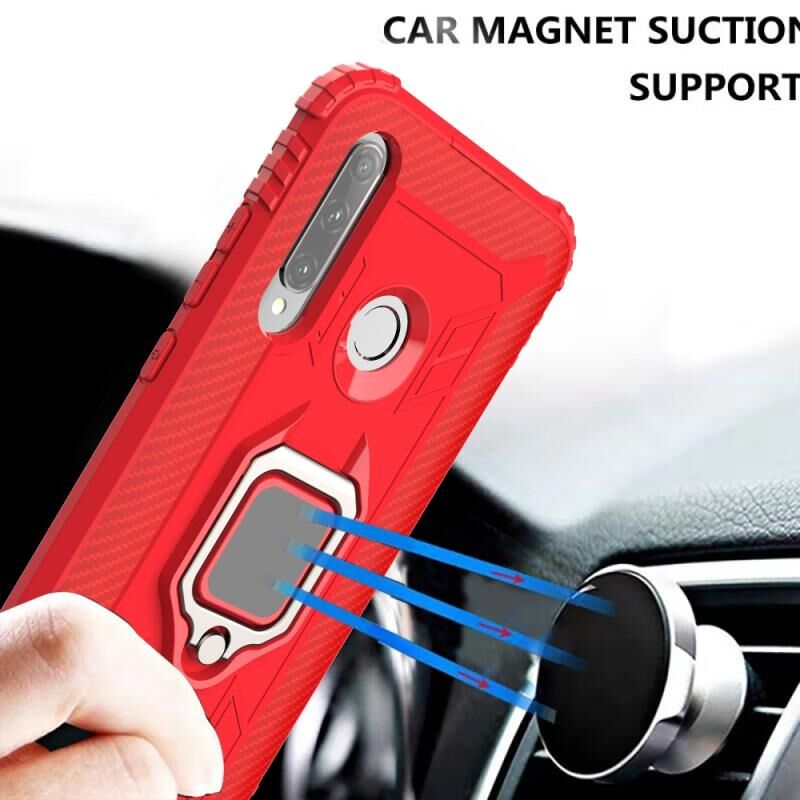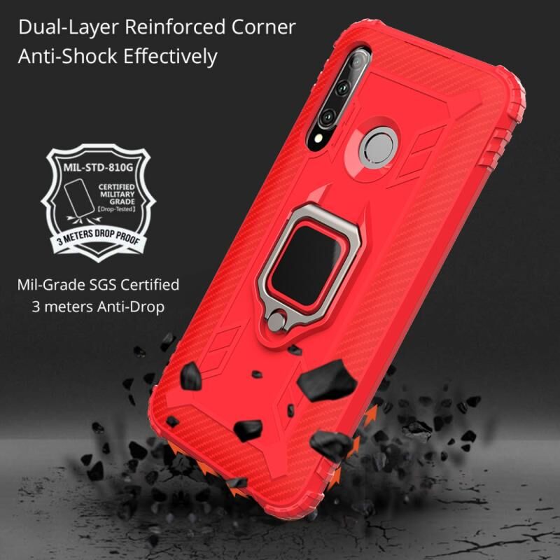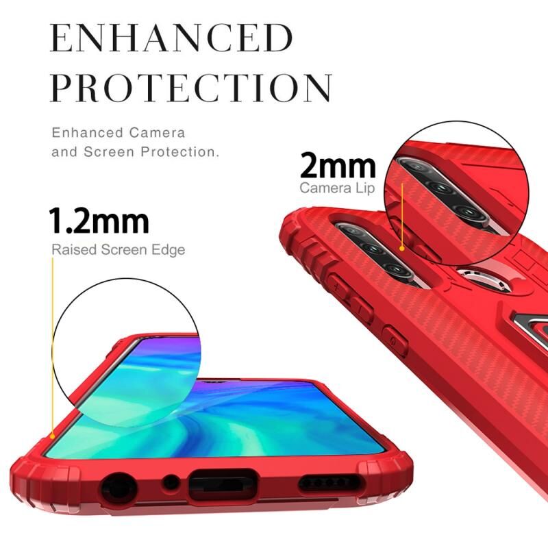 Για Huawei Honor 20 Lite Carbon Fiber Προστατευτική θήκη με 360 μοίρες περιστρεφόμενη θήκη δακτυλίου (κόκκινο)