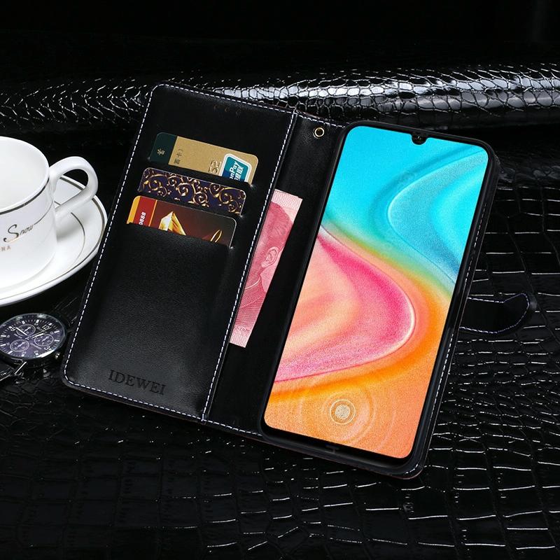 Θήκη δέρματος idewei με βάση & θήκες καρτών για Huawei Honor 20 Lite (Μαύρο)