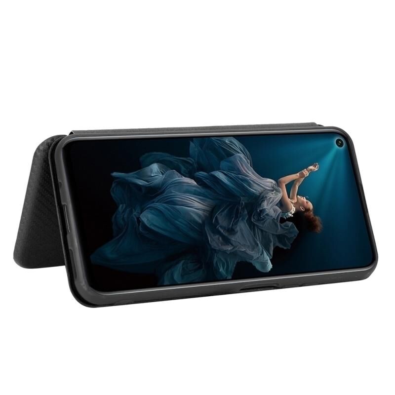 Για Huawei Honor 20 / nova 5T Θήκη οριζόντιας αναδίπλωσης από TPU + PC + Δερματίνη PU με υφή ανθρακονήματος και θήκη για κάρτες (Μαύρο)