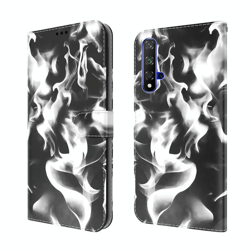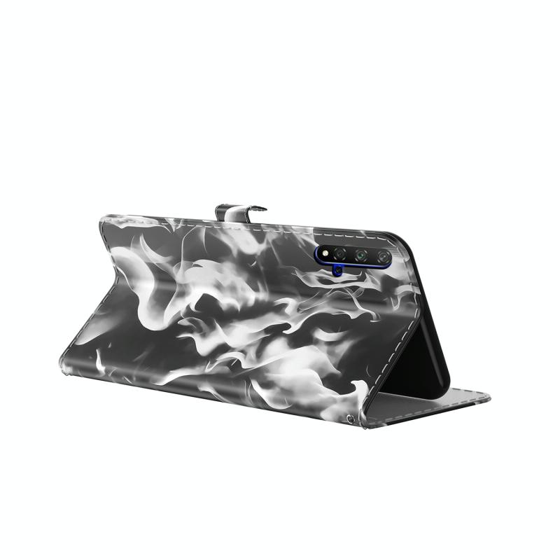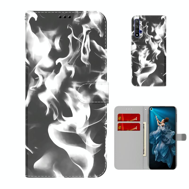 Θήκη δέρματος οριζόντιας αναδίπλωσης με σχέδιο σύννεφων και ομίχλης για Huawei Honor 20 / nova 5T με βάση στήριξης & υποδοχή κάρτας & πορτοφόλι (Μαύρο)