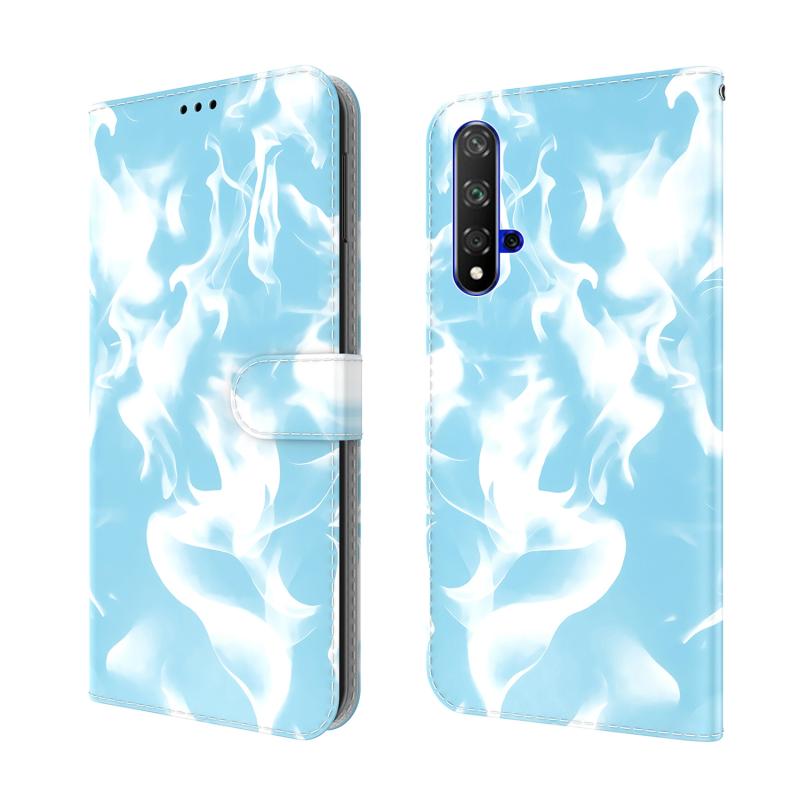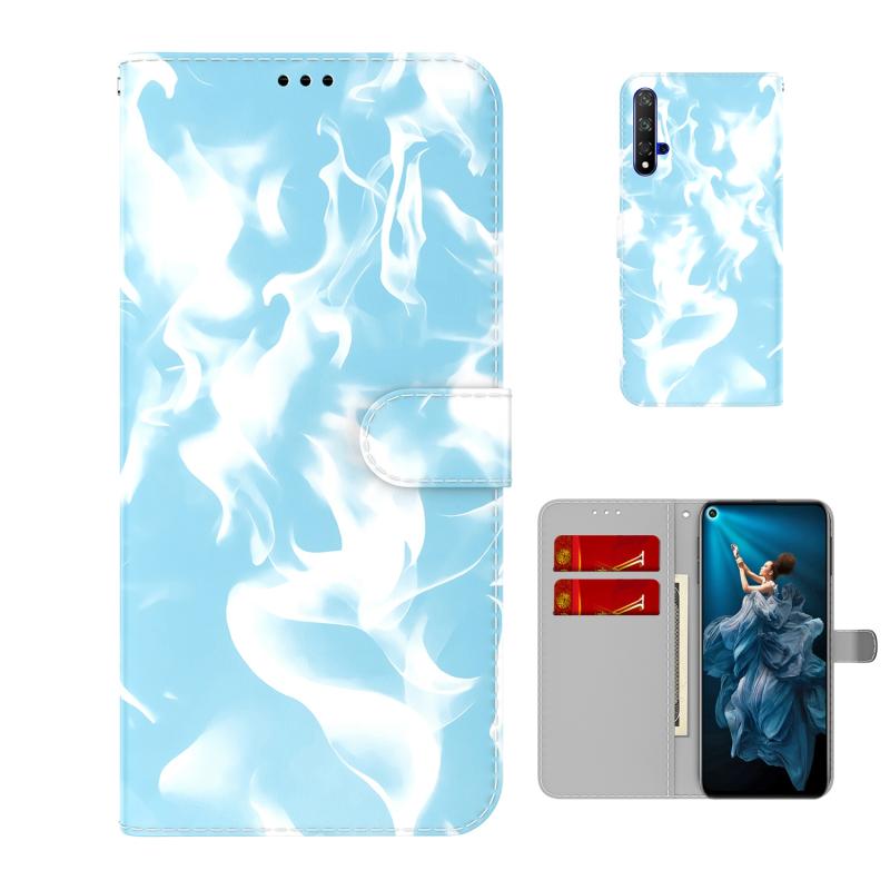 Θήκη δέρματος οριζόντιας αναδίπλωσης με σχέδιο σύννεφων και ομίχλης για Huawei Honor 20 / nova 5T με βάση στήριξης & υποδοχή κάρτας & πορτοφόλι (Γαλάζιο του ουρανού)