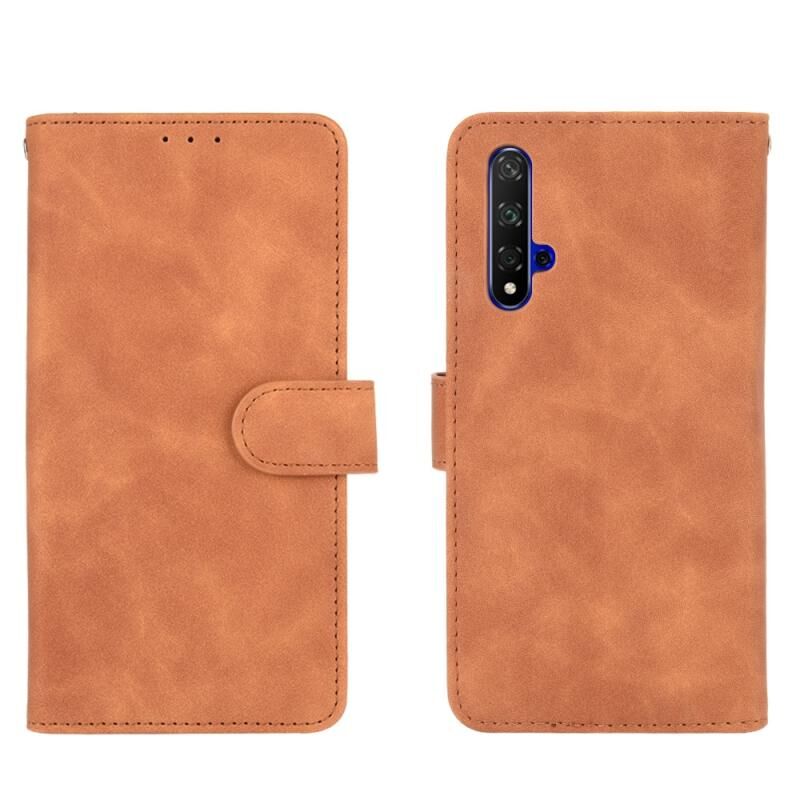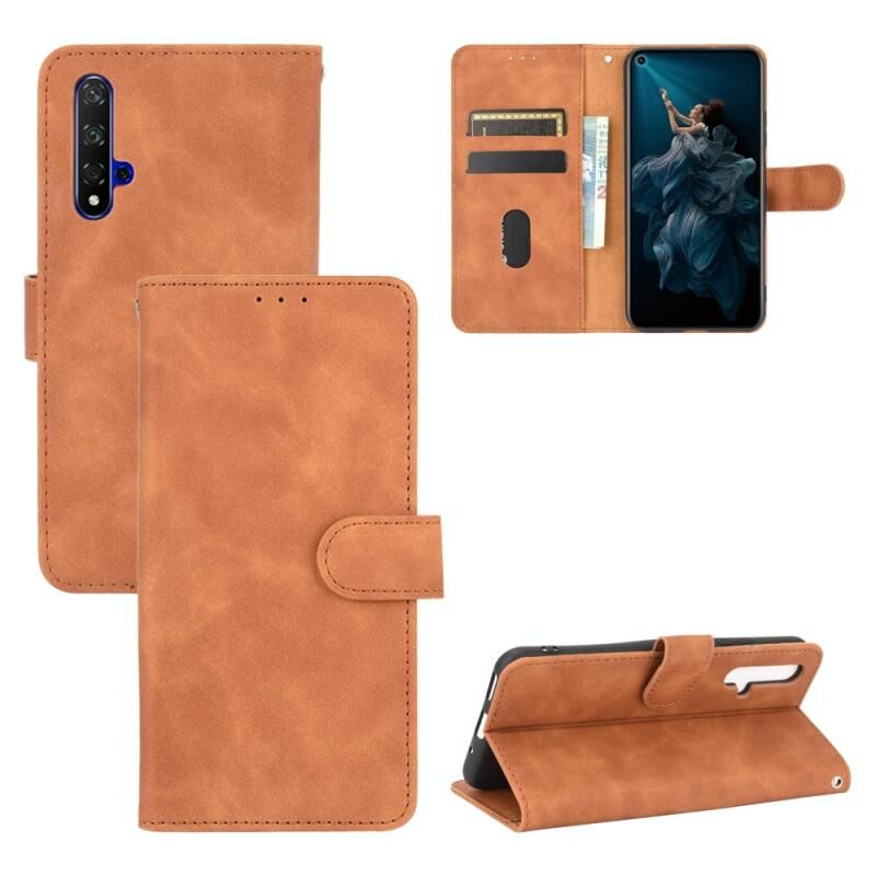 Για Huawei Honor 20 / nova 5T Solid Color Skin Feel μαγνητική πόρπη οριζόντια Flip μοσχάρι υφή PU δέρμα υπόθεση με κάτοχο & υποδοχές καρτών & πορτοφόλι (καφέ)