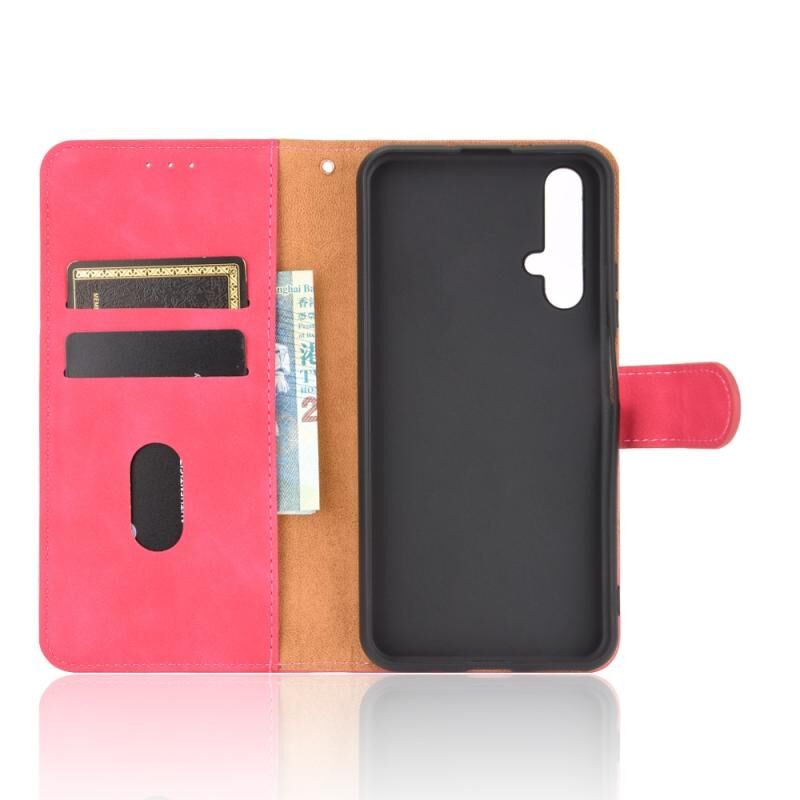 Για Huawei Honor 20 / nova 5T Solid Color Skin Feel μαγνητική πόρπη οριζόντια Flip μοσχάρι υφή PU δέρμα υπόθεση με κάτοχο & υποδοχές καρτών & πορτοφόλι (Rose Red)