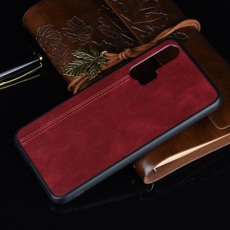 For Huawei Honor 20 Pro Shockproof Sewing Cow Pattern Skin PC + PU + TPU Case(Red)