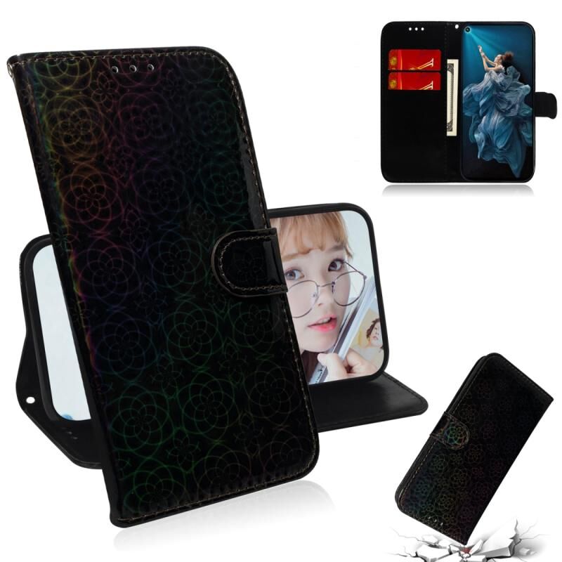 Για Huawei Honor 20 Pro Αμιγές χρώμα πολύχρωμο μαγνητικό πόρπη οριζόντια Flip PU δέρμα υπόθεση με κάτοχο & υποδοχές για κάρτες & πορτοφόλι & Lanyard (μαύρο)