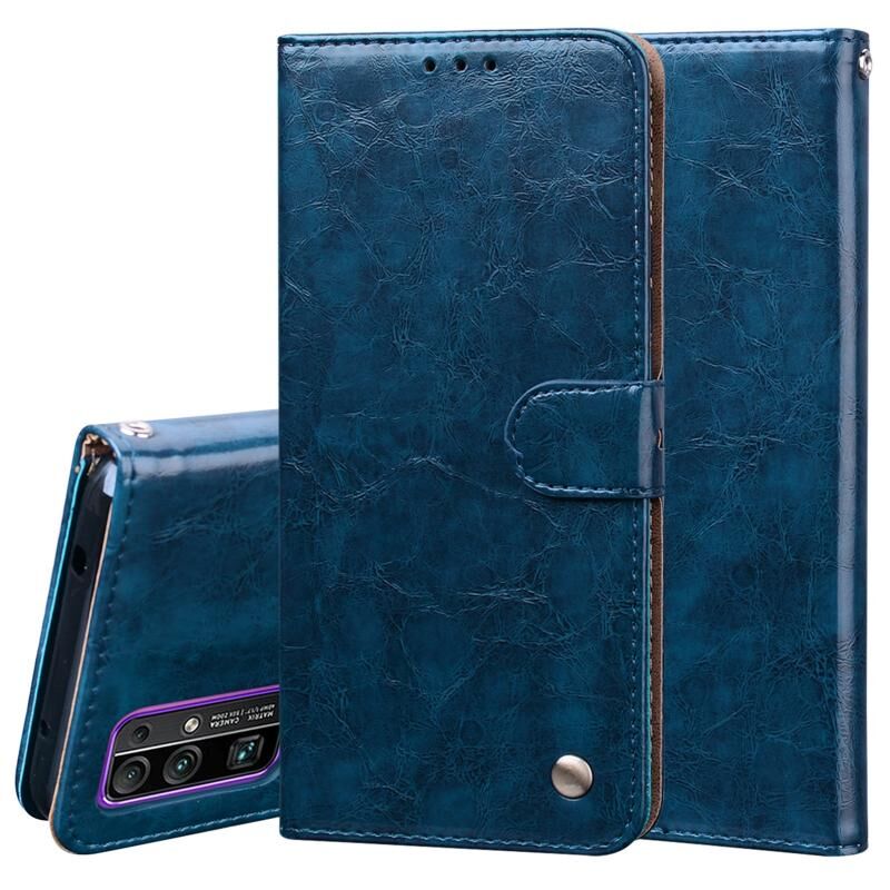 Για Huawei Honor 30 Business Style Oil Wax υφή οριζόντια Flip δερμάτινη θήκη με κάτοχο & υποδοχές για κάρτες & πορτοφόλι (μπλε)