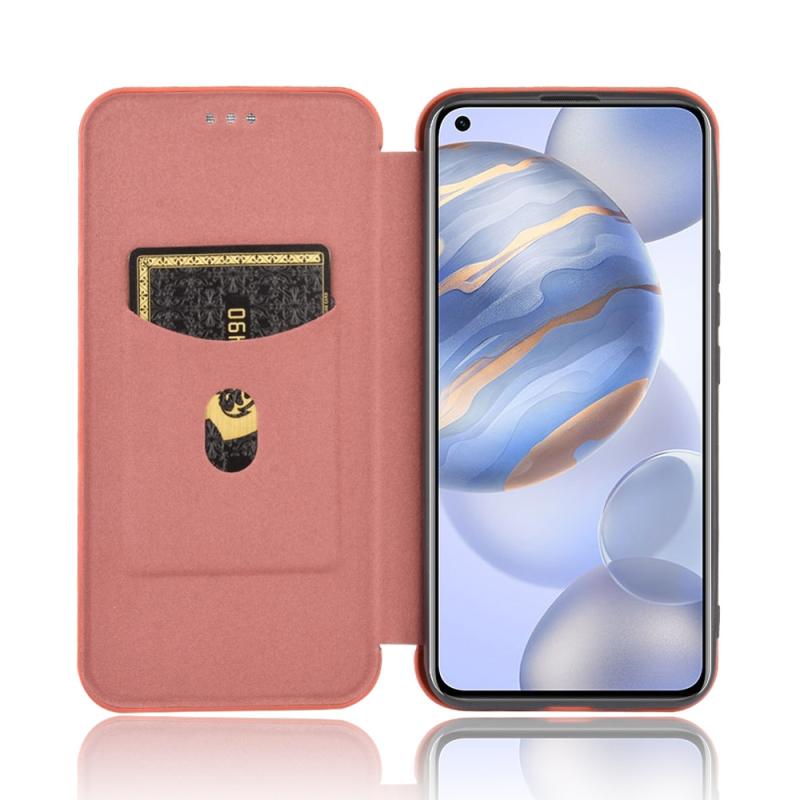 For Huawei Honor 30 Carbon Fiber Texture Horizontal Flip TPU + PC + PU Leather Case with Card Slot(Brown)