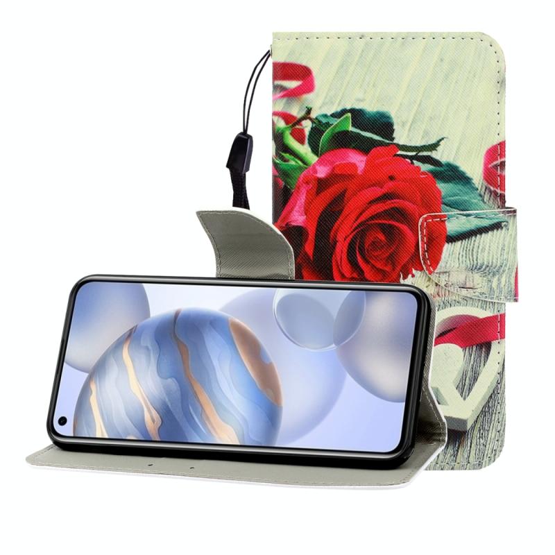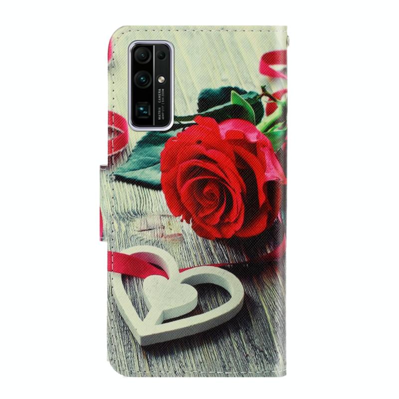 Θήκη δέρματος οριζόντιας αναδίπλωσης με σχέδιο για Huawei Honor 30, με βάση στήριξης & υποδοχή κάρτας & πορτοφόλι (Κόκκινο Τριαντάφυλλο)