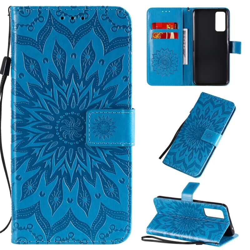 Για Huawei Honor 30 ανάγλυφο ηλιοτρόπιο μοτίβο οριζόντια Flip PU δέρμα υπόθεση με κάτοχο & υποδοχές για κάρτες & πορτοφόλι & Lanyard (μπλε)