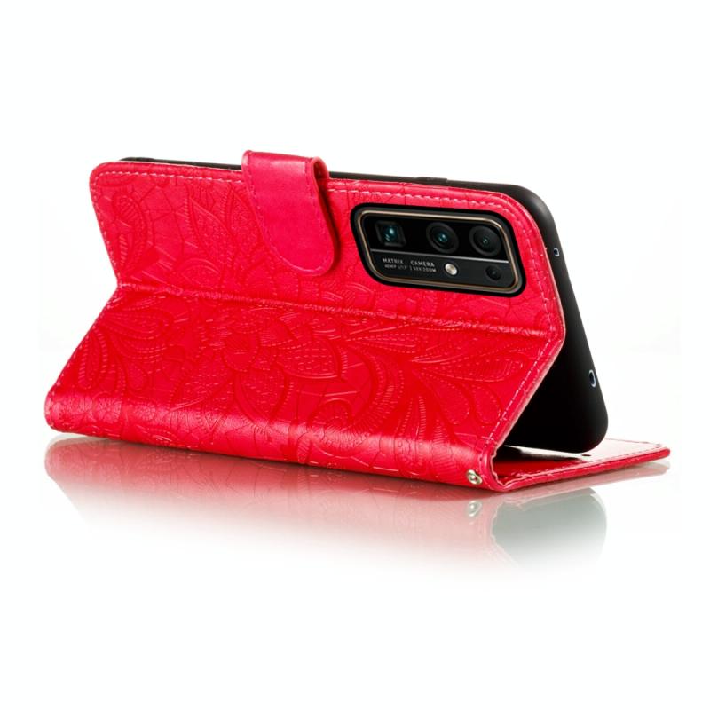 Θήκη Honor 30 Δερμάτινη Flip με Λουλούδι & Λουρί - Γκρι (Κόκκινο)