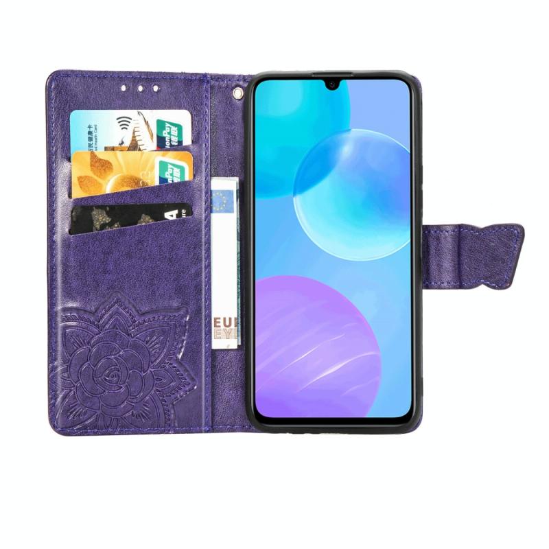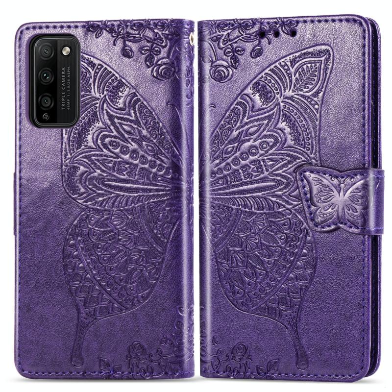 For Huawei Honor 30 Lite Butterfly Love Flower Embossed Horizontal Flip Leather Case with Holder & Card Slots & Wallet & Lanyard(Dark Purple)