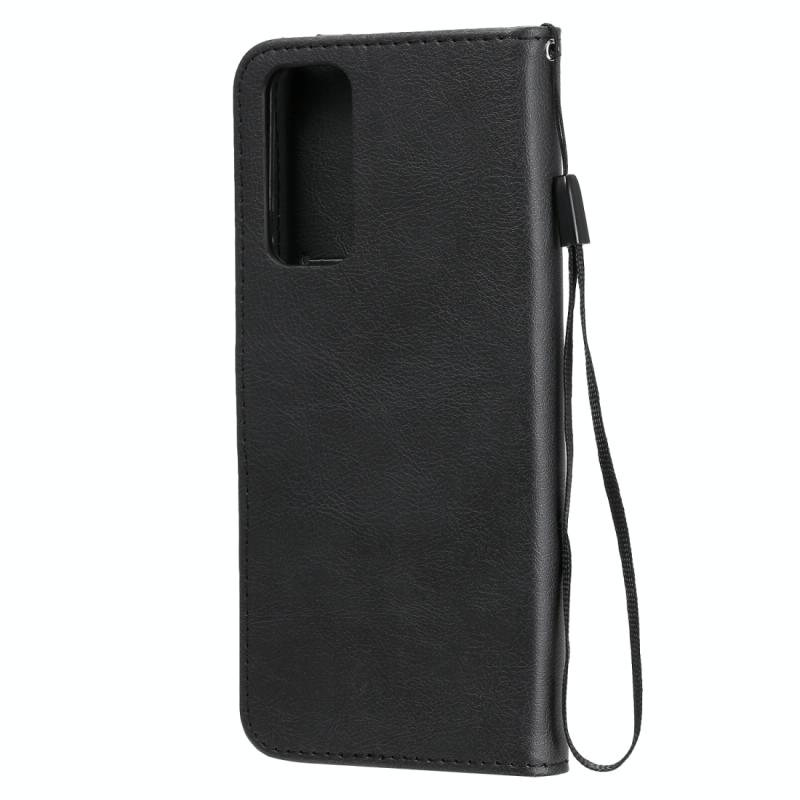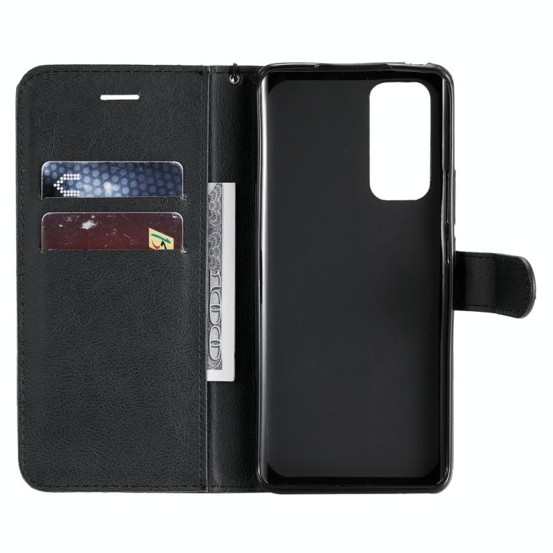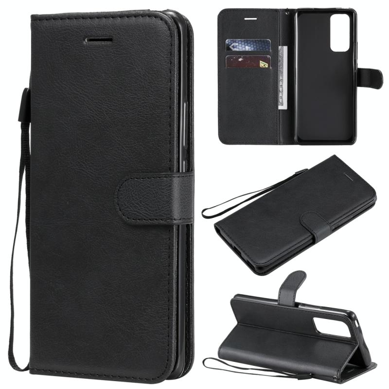 Θήκη δέρματος προστασίας οριζόντιας αναδίπλωσης για Huawei Honor 30 Pro, μονόχρωμη, με βάση στήριξης, θήκες καρτών, πορτοφόλι και κορδόνι (Χρυσό Ρόδινο). (Μαύρο)