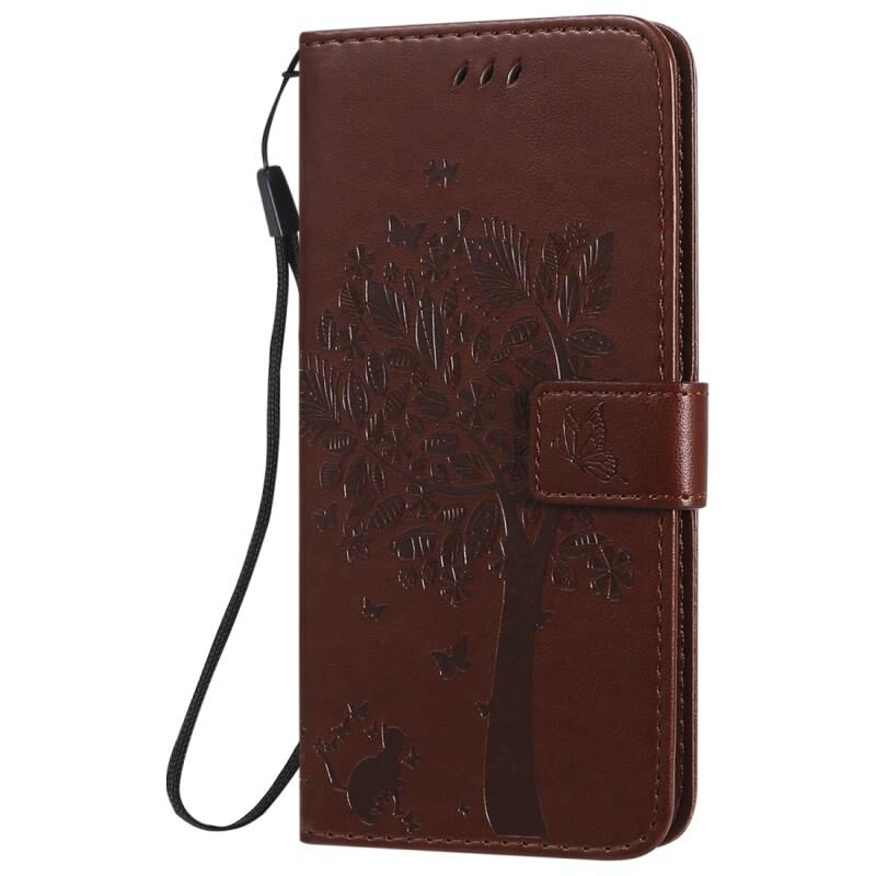 For Huawei Honor 30 Pro Tree & Cat Embossed Pattern Horizontal Flip Leather Case with Holder & Card Slots & Wallet & Lanyard(Coffee)